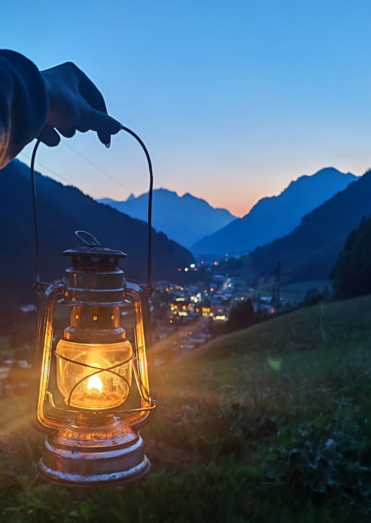 Während unseres Urlaubs im wunderschönen Klostertal haben mein Papa (71 Jahre jung) und ich an einer ganz besonderen Tour teilgenommen: der Laternenwanderung zu den Wasserplätzen in Klösterle am Arlberg.